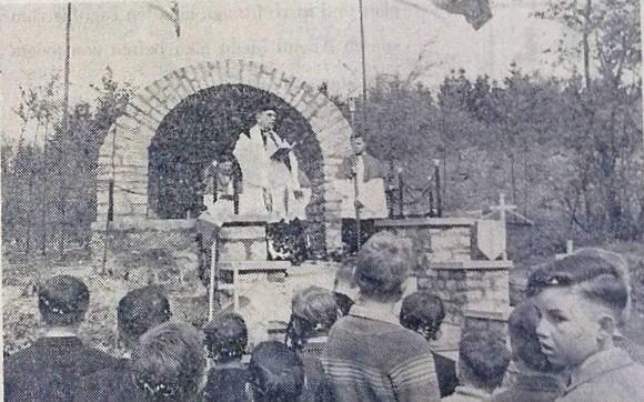Segnung der neuen Grotte durch Pastor Heck am 1. Mai 1960 (Foto Theo Plettenberg, SZ)